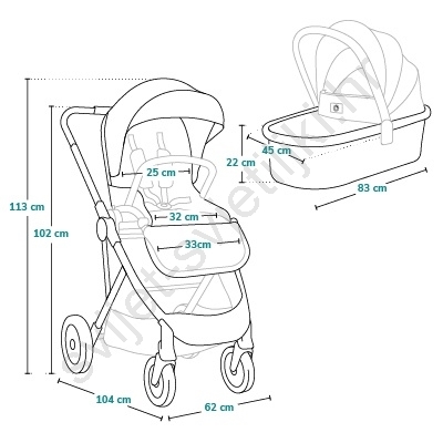 • U kompletu: torba, adapteri za autosjedalicu, mrežica protiv komaraca, kišna navlaka, dvije navlake za noge i previjalna podloga.