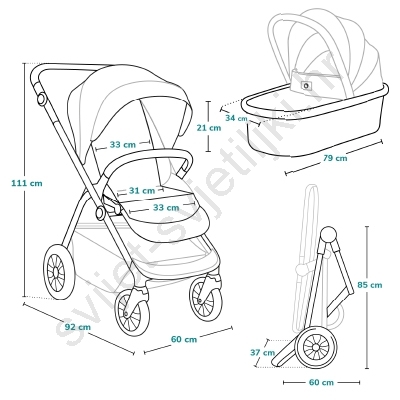 • Set dodatne opreme: navlaka za noge, kišna navlaka, mreža protiv komaraca, torba s džepovima i ojačanim dnom, adapteri za autosjedalicu.