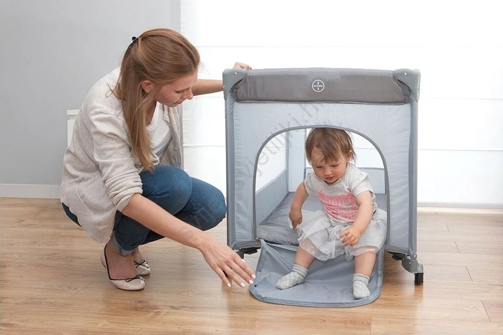 • Bočni ulaz s patentnim zatvaračem omogućuje udobno i brzo smještanje djeteta bez potrebe za podizanjem preko bočne ograde.
