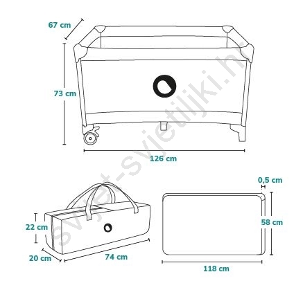 • Kompaktne dimenzije nakon sklapanja i priložena torba za nošenje s ručkama omogućuju da krevetić uvijek ponesete sa sobom.