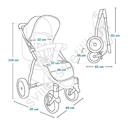 • 9-stupanjsko podešavanje ručke (81 - 121 cm) za savršeno prilagođavanje visini roditelja.