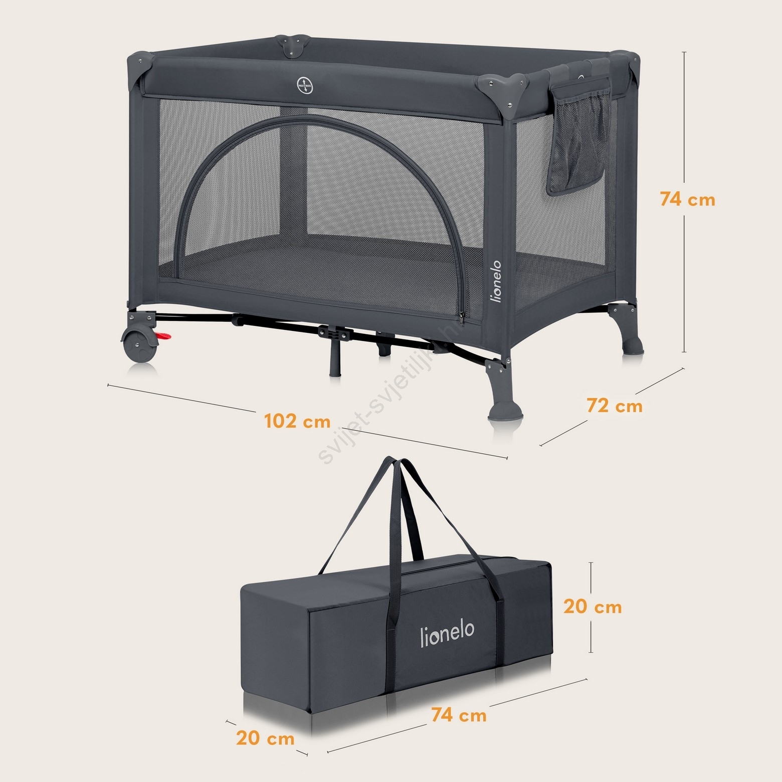 • Krevetić se može koristiti kao klasični dječji krevetić i kao lagani sklopivi putni krevetić za obiteljske izlete.