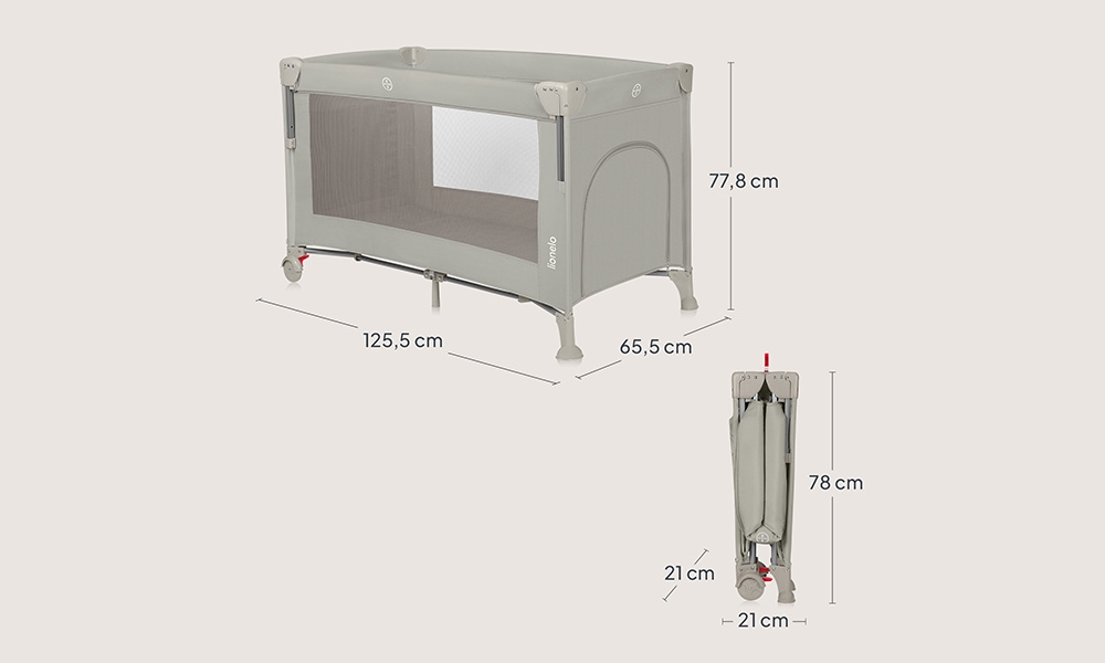 • Kompaktne dimenzije nakon sklapanja i priložena torba za transport s ručkama omogućuju da uvijek ponesete krevetić sa sobom.
