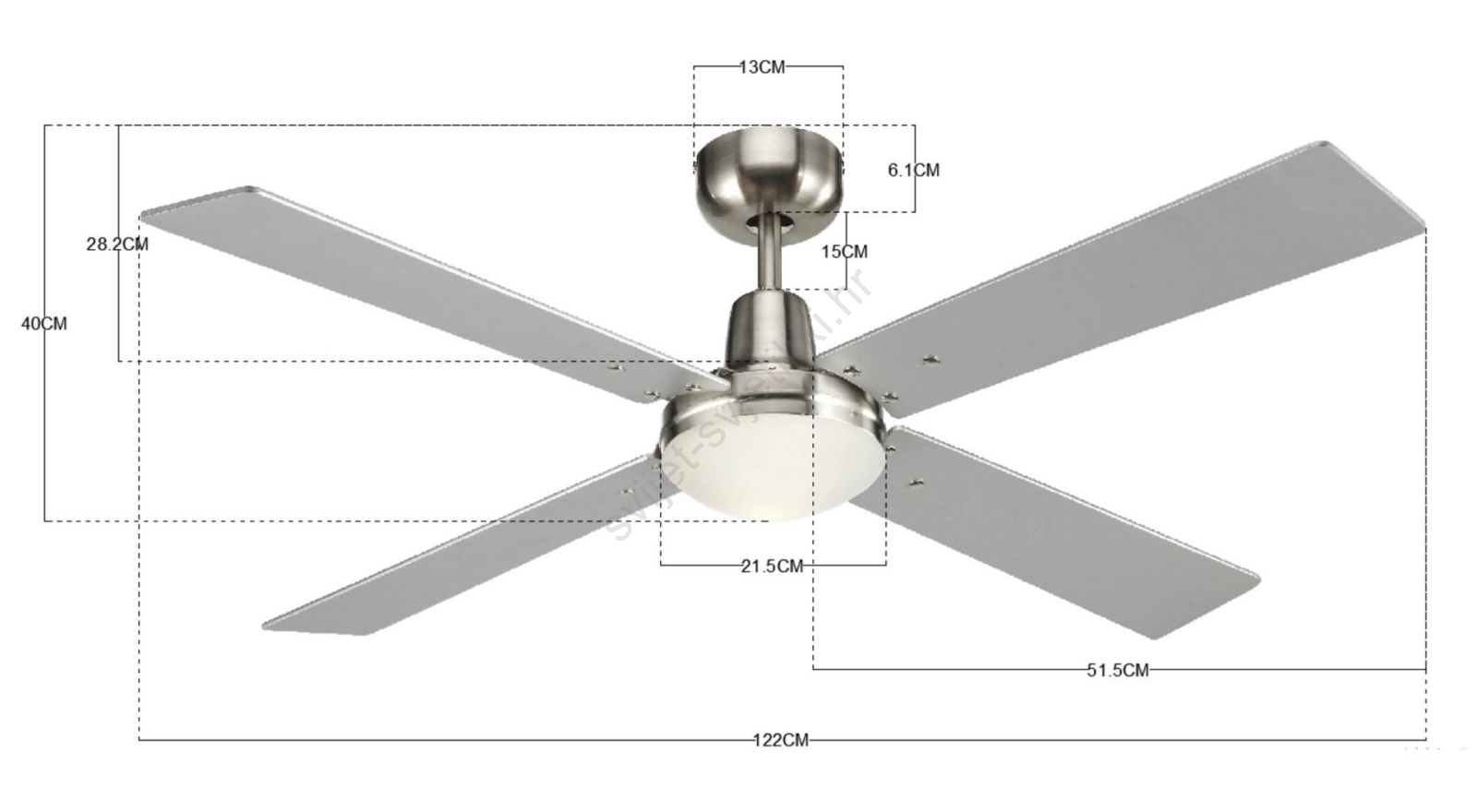 • Moderan stropni ventilator s dvostrukim lopaticama.