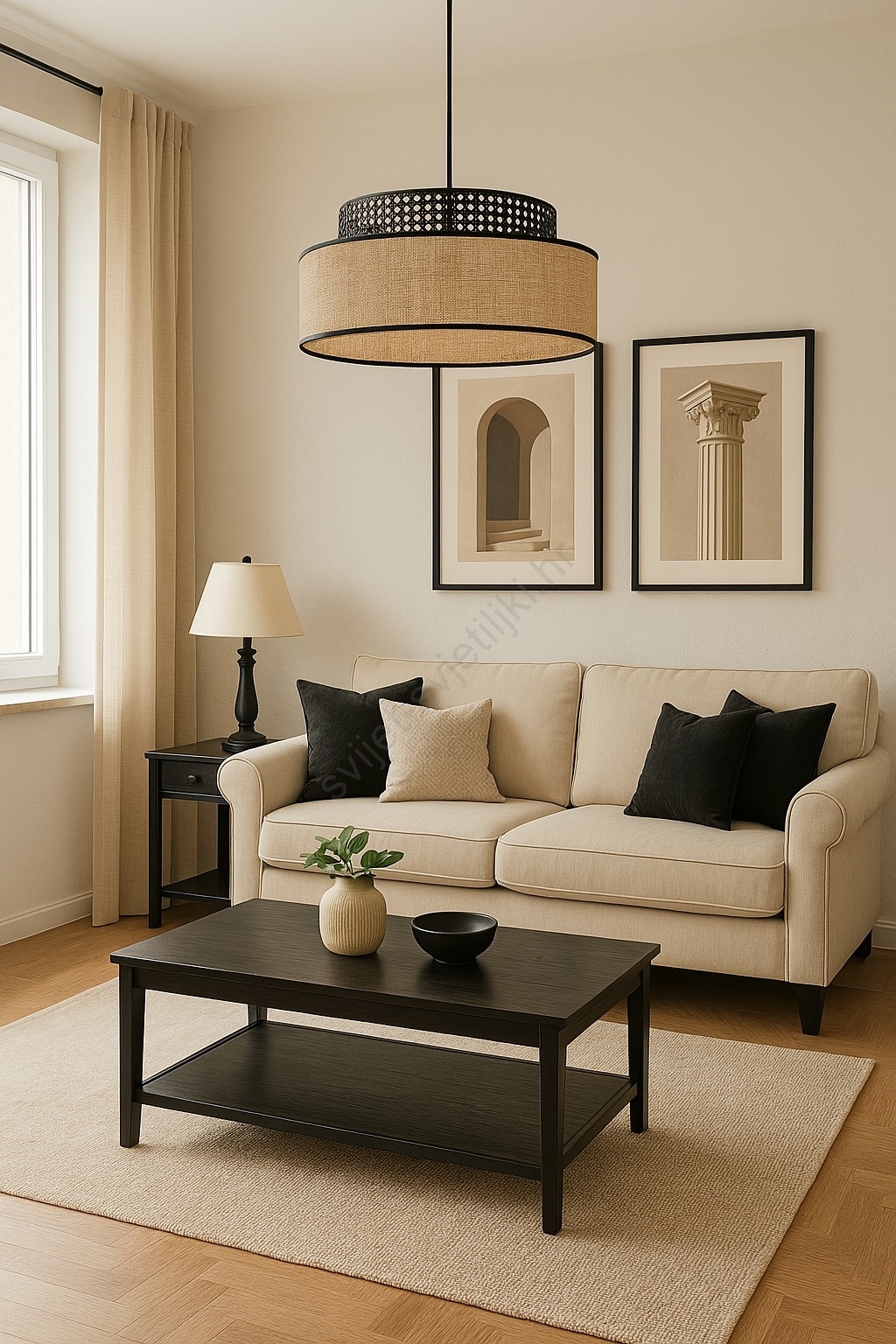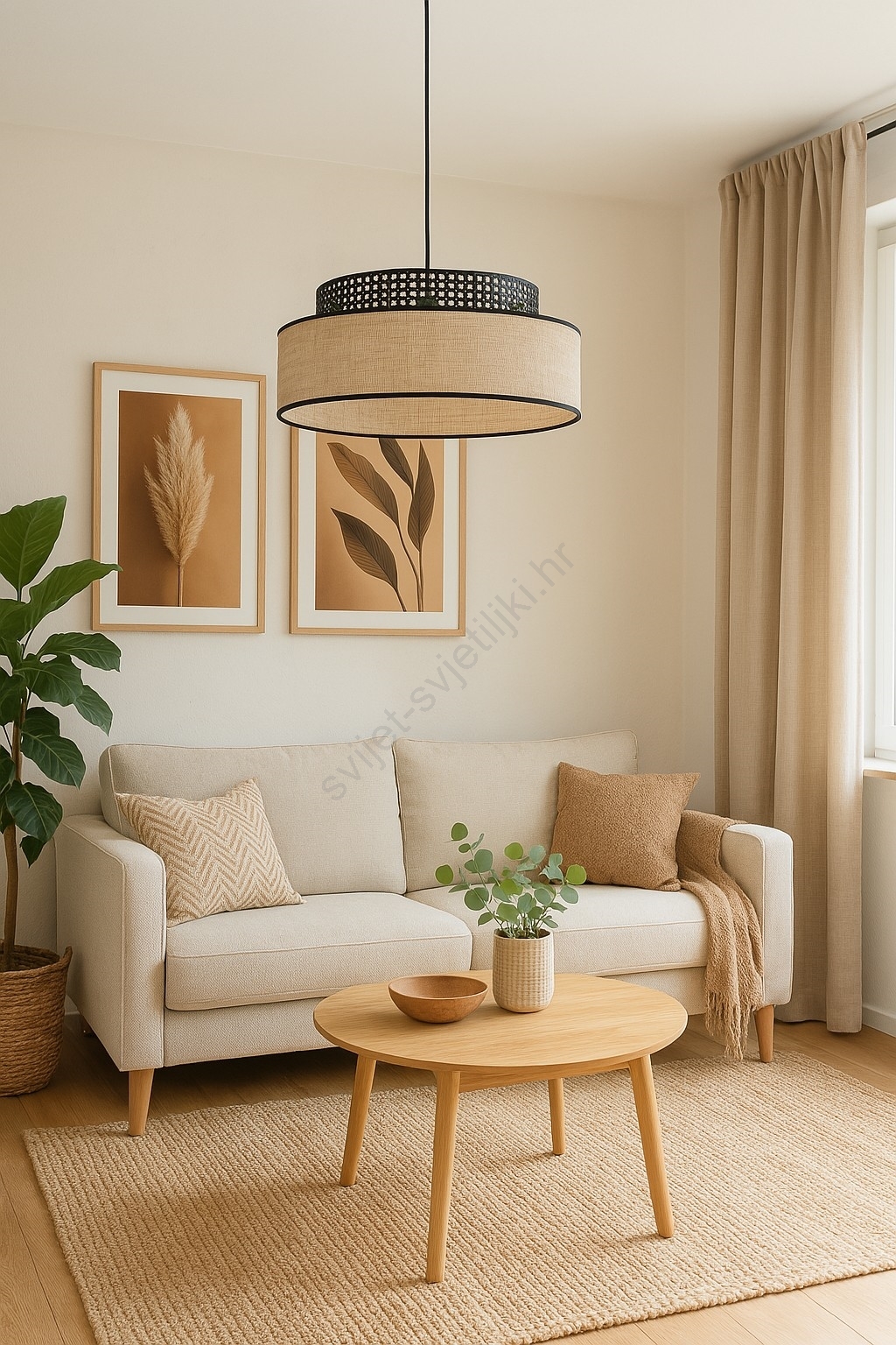 • Luster na sajli BOHO 1xE27/60W/230V pr. 40 cm crna/bež