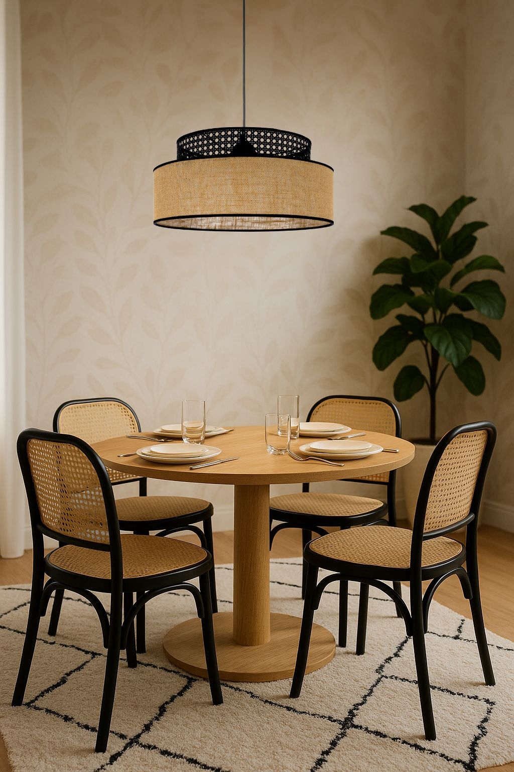 • Luster na sajli BOHO 1xE27/60W/230V pr. 40 cm crna/ratan
