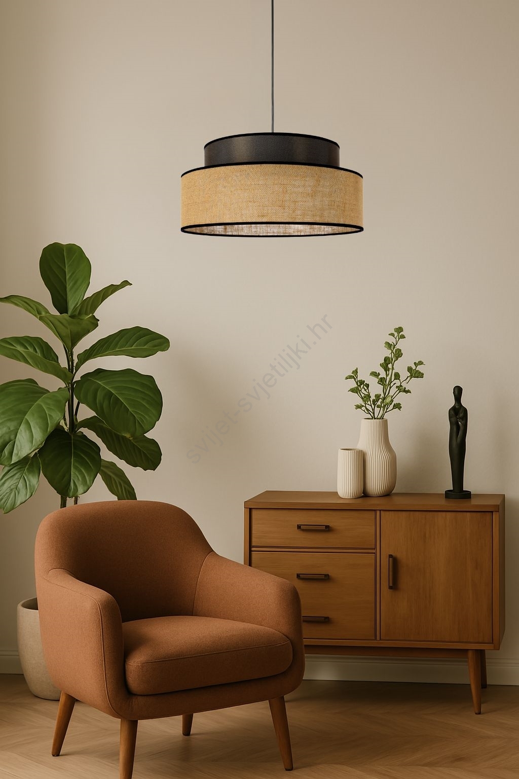 • Luster na sajli BOHO 1xE27/60W/230V pr. 40 cm crna/bež