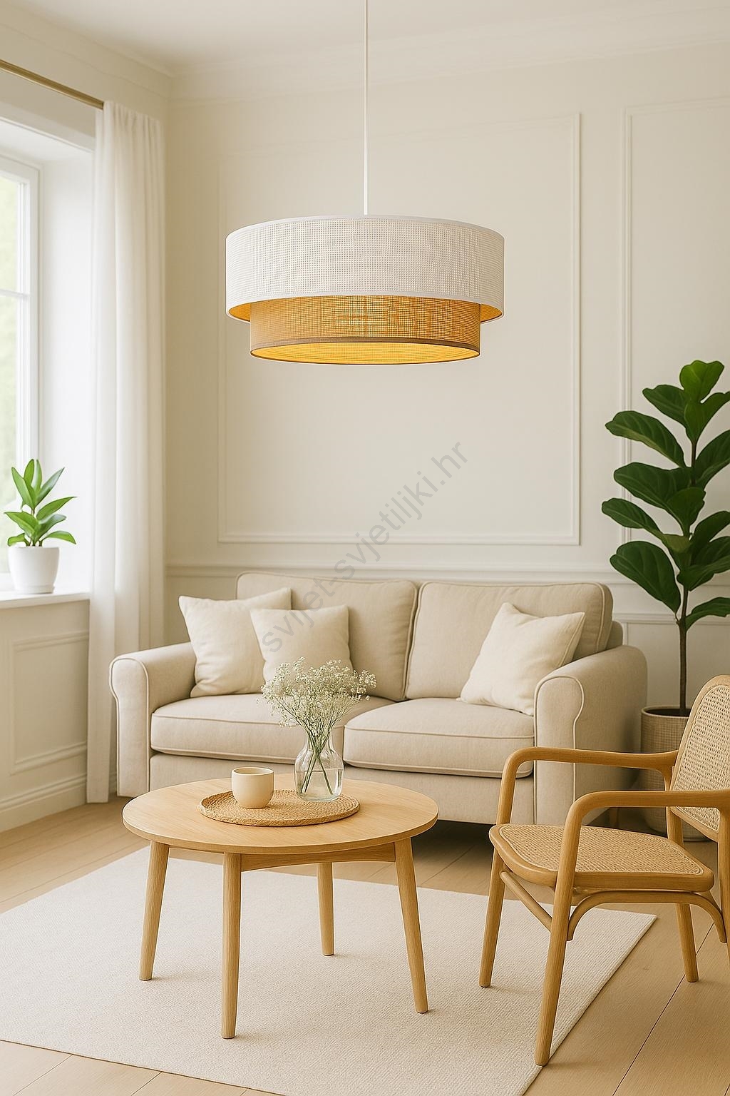 • Luster na sajli BORHO 1xE27/60W/230V Ø 50 cm bijela/juta