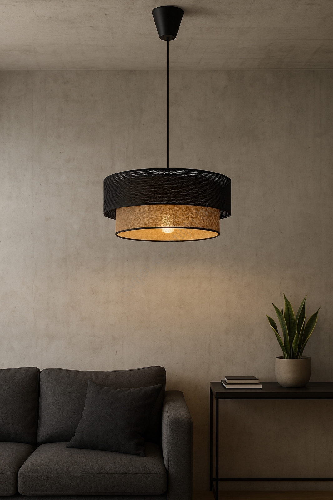 • Luster na sajli BORHO 1xE27/60W/230V pr. 40 cm crna/juta