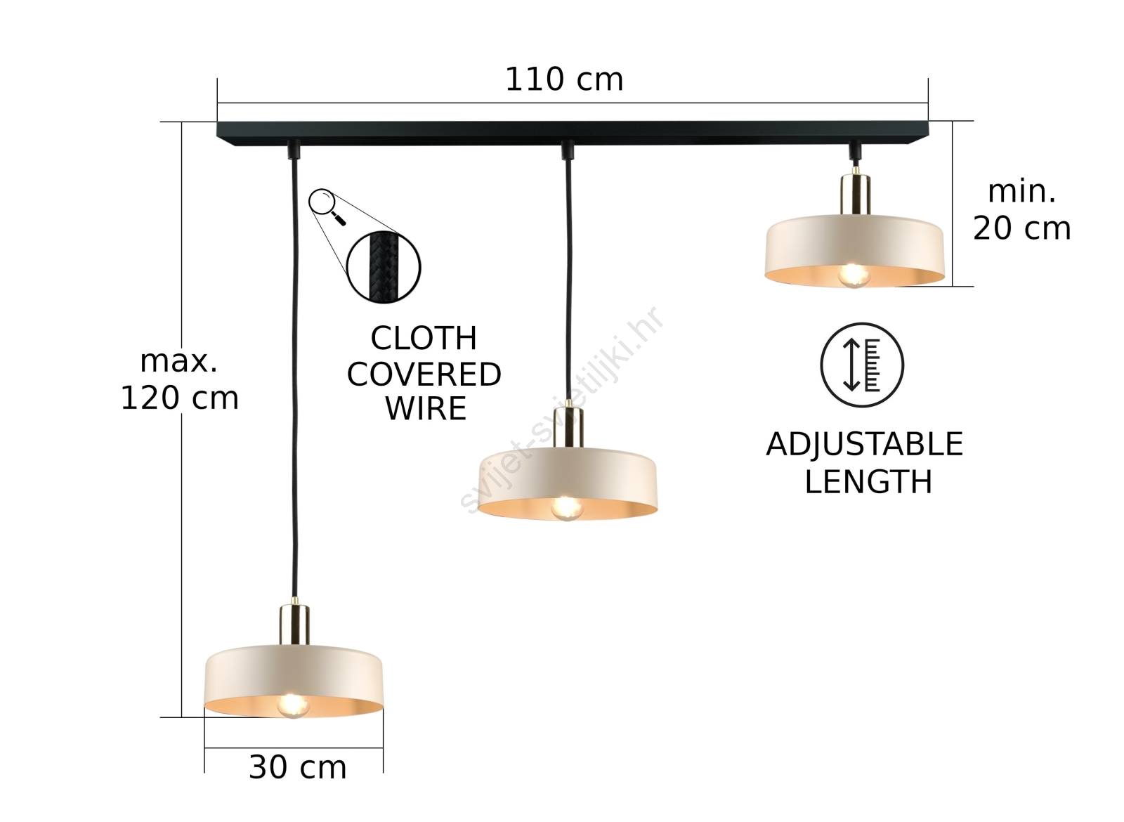 • Luster na sajli LATTE 3xE27/60W/230V bež/crna/zlatna