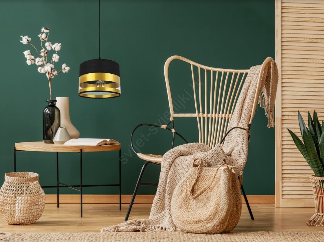 Luster na sajli MILO 1xE27/60W/230V zlatna/crna karakterizira lijep i funkcionalan dizajn. Za svjetiljku je prikladna žarulja s bazom E27. Ovdje možete kupiti i druge žarulje po povoljnim cijenama. Bit će zanimljiv dodatak Vašem domu.