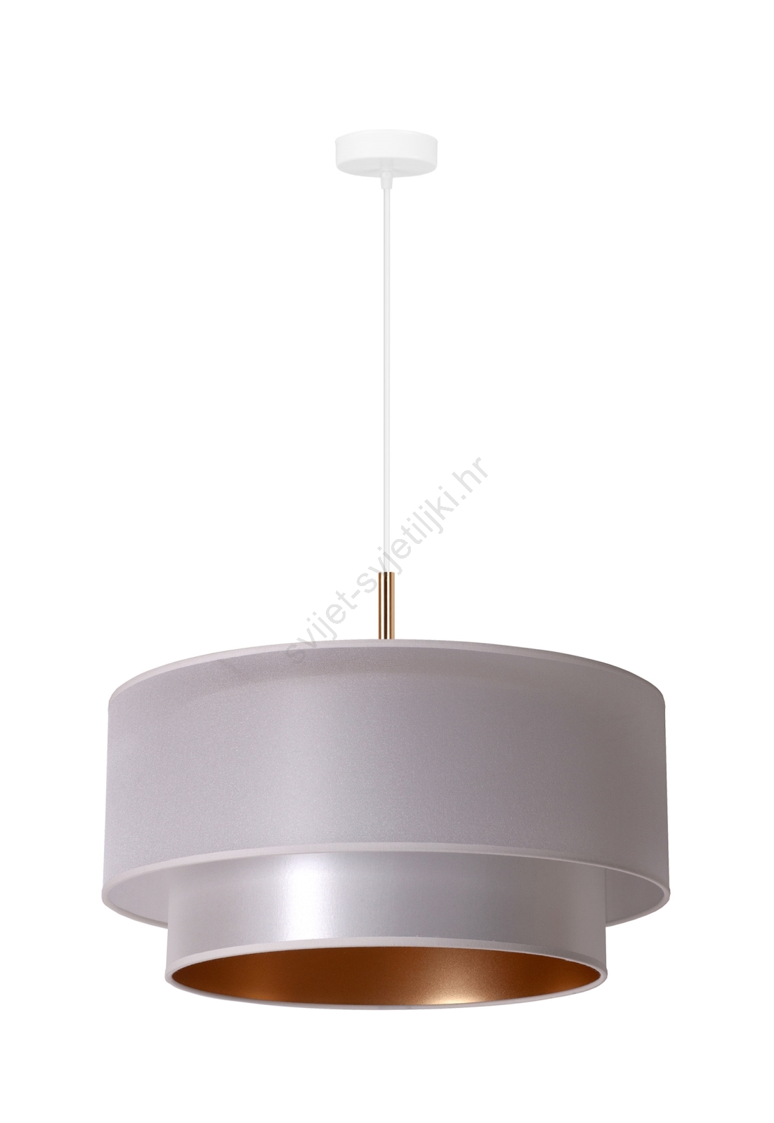 Duolla - Luster na sajli NANTES 1xE27/15W/230V pr. 45 cm srebrna/bakrena karakterizira lijep i funkcionalan dizajn. Za svjetiljku je prikladna žarulja s bazom E27. Ovdje možete kupiti i druge žarulje po povoljnim cijenama. Bit će zanimljiv dodatak Vašem domu.