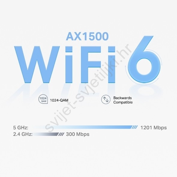 • Bežično radi na dva pojasa (2,4 GHz i 5 GHz), što povećava stabilnost i performanse.
