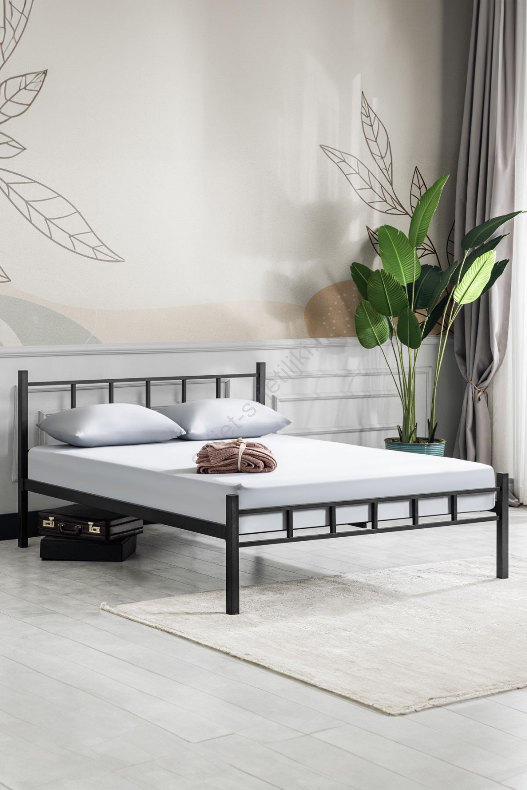 Metalni bračni krevet ORMEL 160x200 cm, crni, nosivost 200 kg