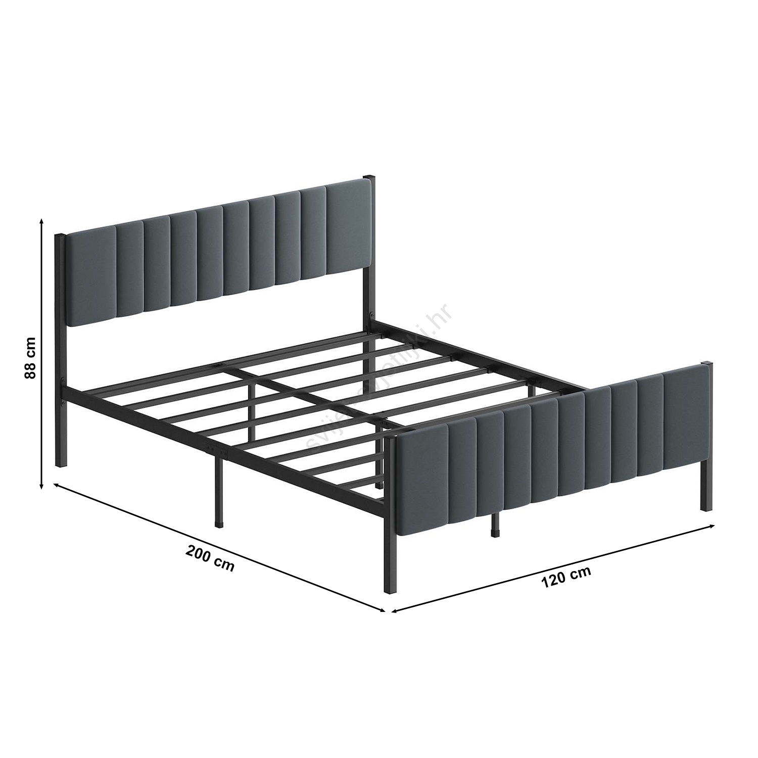 • Kovinski bračni krevet KAROM 120x200 cm, siva, maksimalna nosivost 120 kg