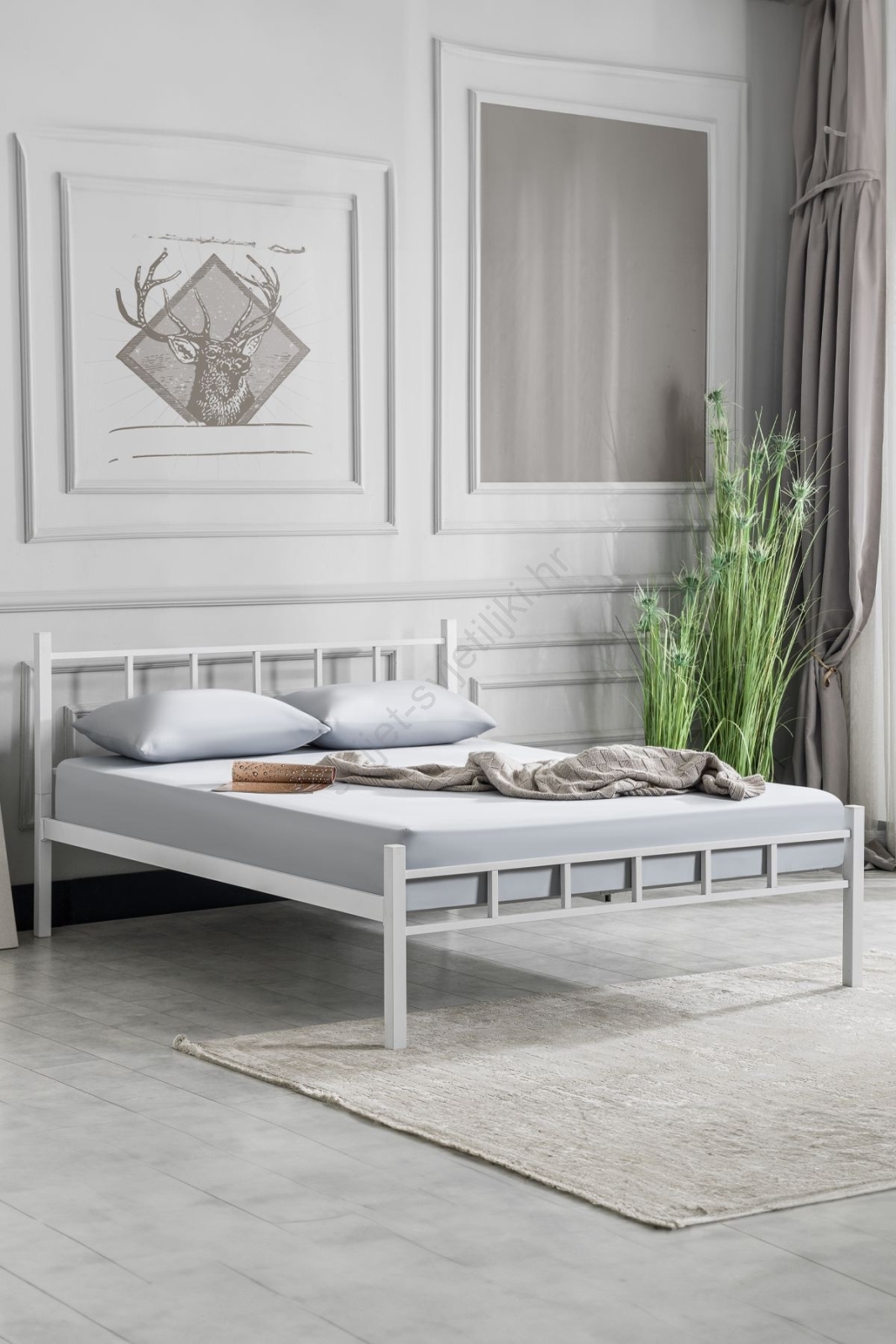 Metalni krevet za dvoje ORMEL 160x200 cm, bijeli, nosivost 200 kg