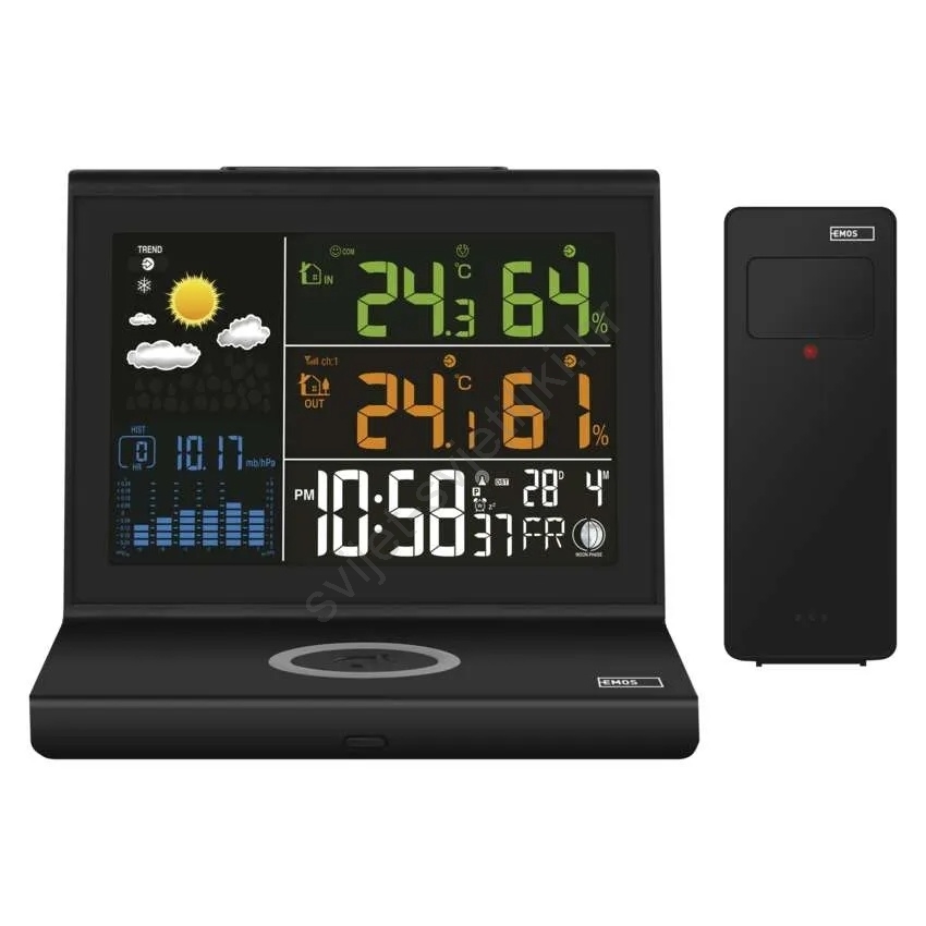 Meteostanica s bežičnim punjenjem 5V, 2xAA + 2xAAA, crna