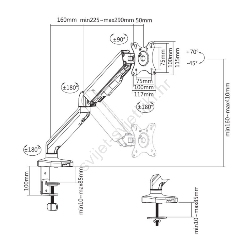 • Nakon montiranja držača na stol moguće je zakretanje u stranu, horizontalno i vertikalno okretanje zaslona, nagib pod različitim kutovima i podešavanje visine.