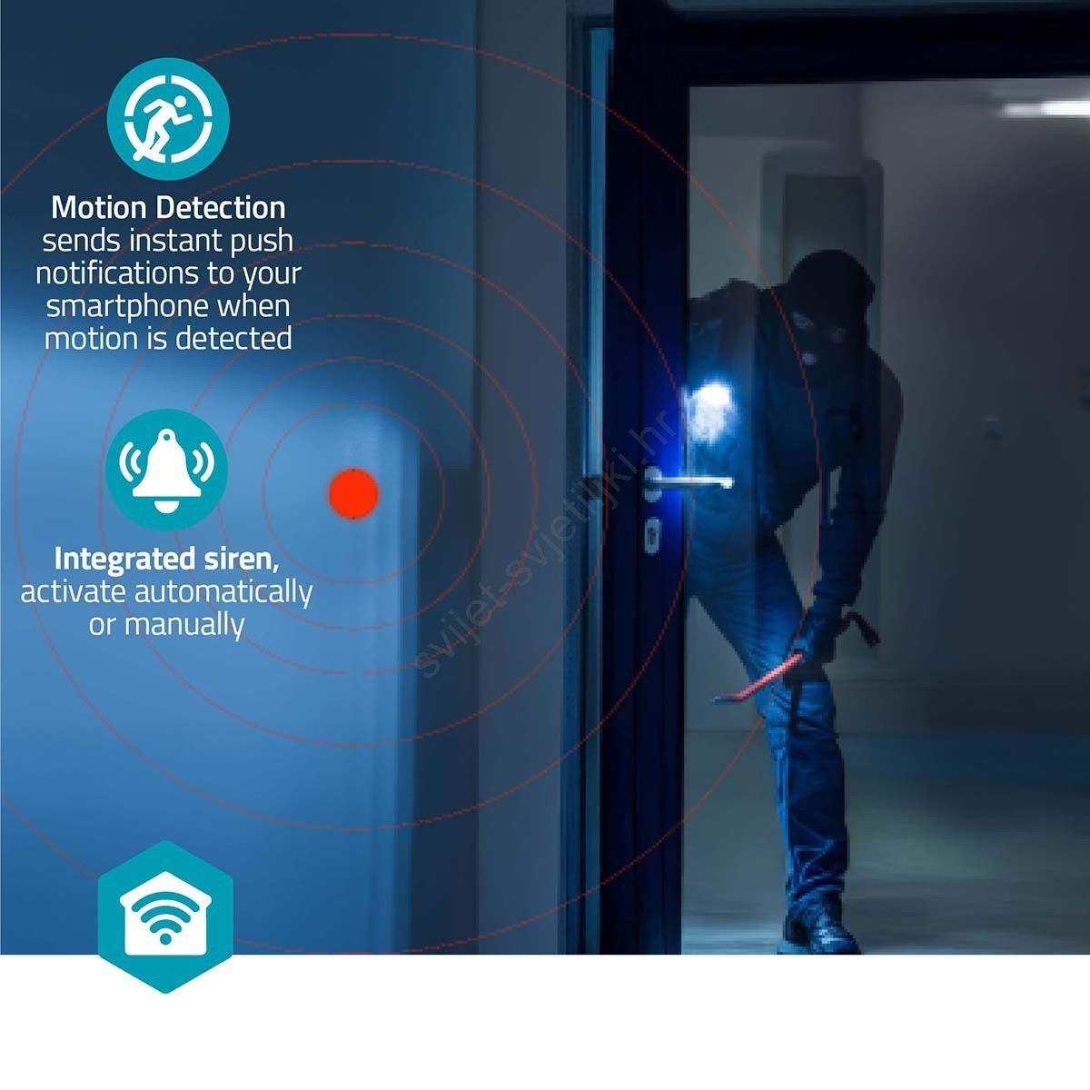 • Automatska aktivacija sirene pri detekciji pokreta za odvraćanje uljeza.