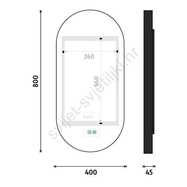 • Ogledalo ispunjava zahtjeve norme ČSN 33 2130 ed. 4 čl. 8.8.1 koji se odnose na sigurno postavljanje električnih uređaja u kupaonicama i odgovarajući stupanj IP zaštite.