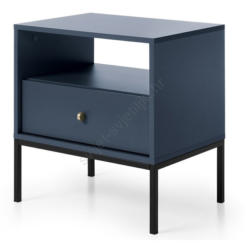 • Noćni ormarić u tamnoplavoj izvedbi.