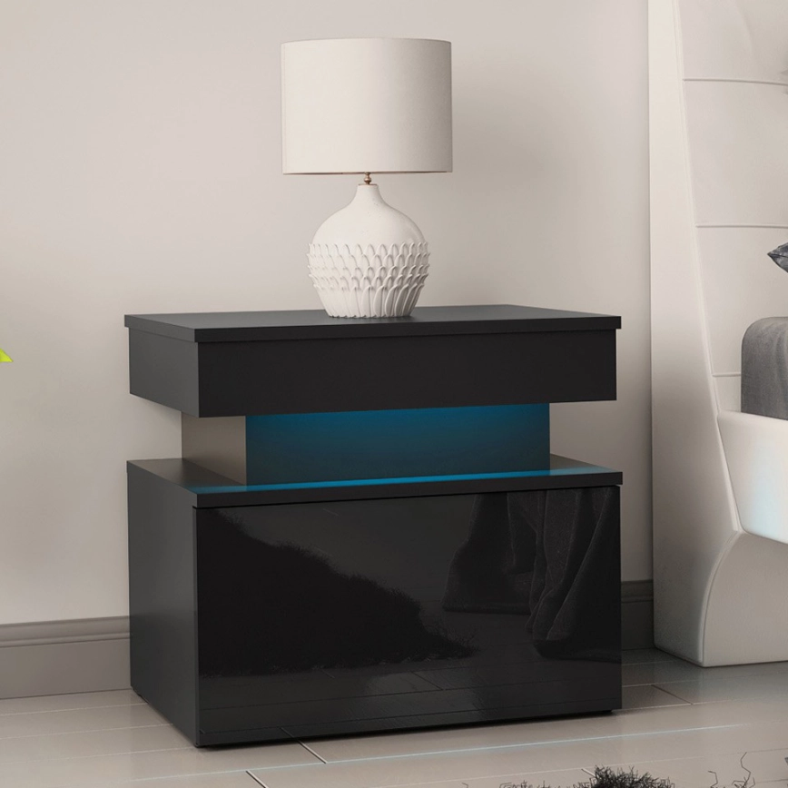 Noćni ormarić s LED rasvjetom GLOSSA 51x55 cm crna/sjajna crna