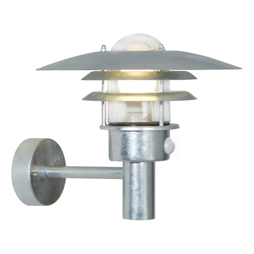 Nordlux - Vanjsko zidno svjetlo sa senzorom LONSTRUP 1xE27/60W/230V IP44 srebrno karakterizira lijep i funkcionalan dizajn. Za svjetiljku je prikladna žarulja s bazom E27. Ovdje možete kupiti i druge žarulje po povoljnim cijenama. Bit će zanimljiv dodatak Vašem domu.