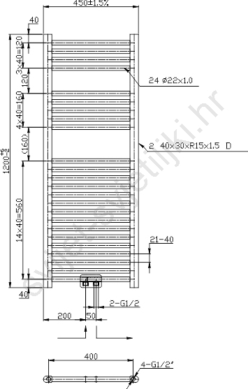 Novaservis - Kupaonski ljestvičasti radijator 318W/230V 120x45 cm sjajni krom ravan