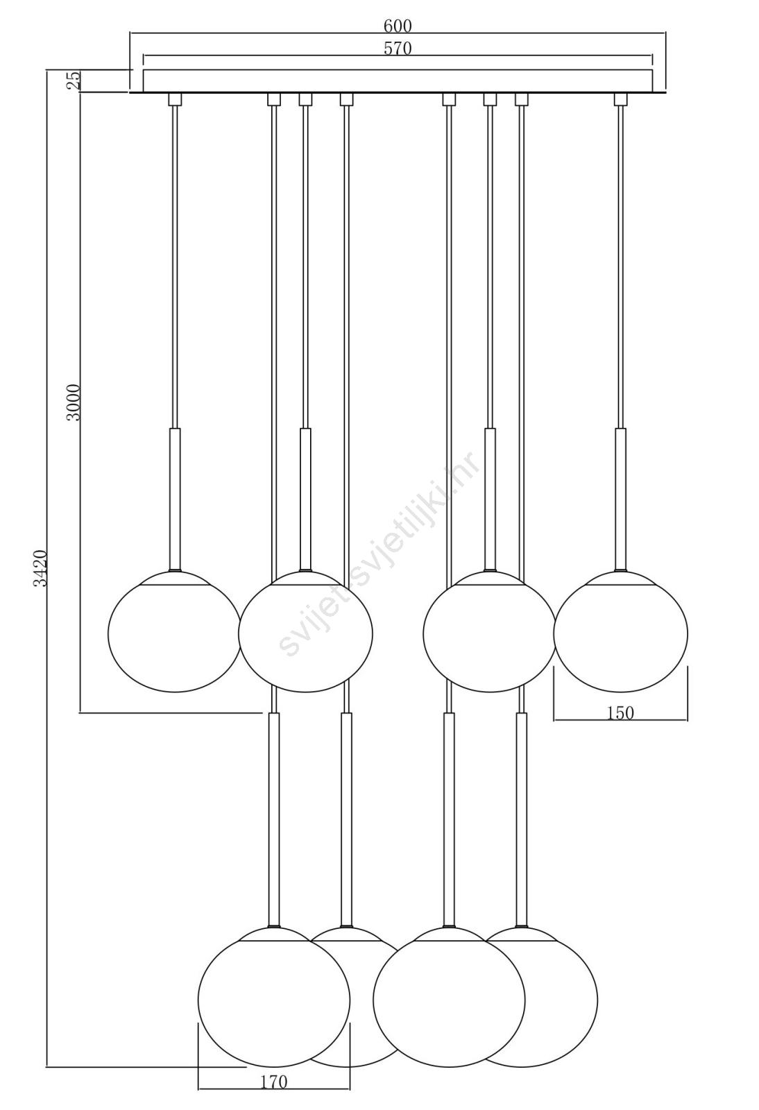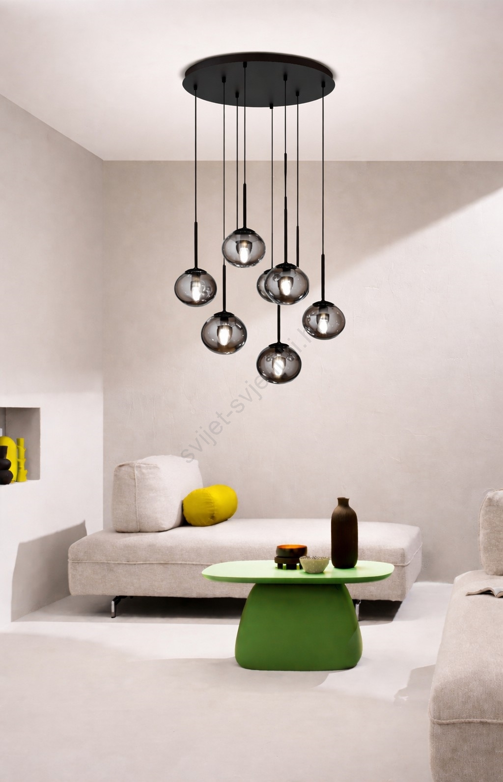 Ondaluce - Luster na sajli JEWEL 8xE14/10W/230V Ø 70 cm dimljeno-crna karakterizira lijep i funkcionalan dizajn. Za svjetiljku je prikladna žarulja s bazom E14. Ovdje možete kupiti i druge žarulje po povoljnim cijenama. Bit će zanimljiv dodatak Vašem domu.