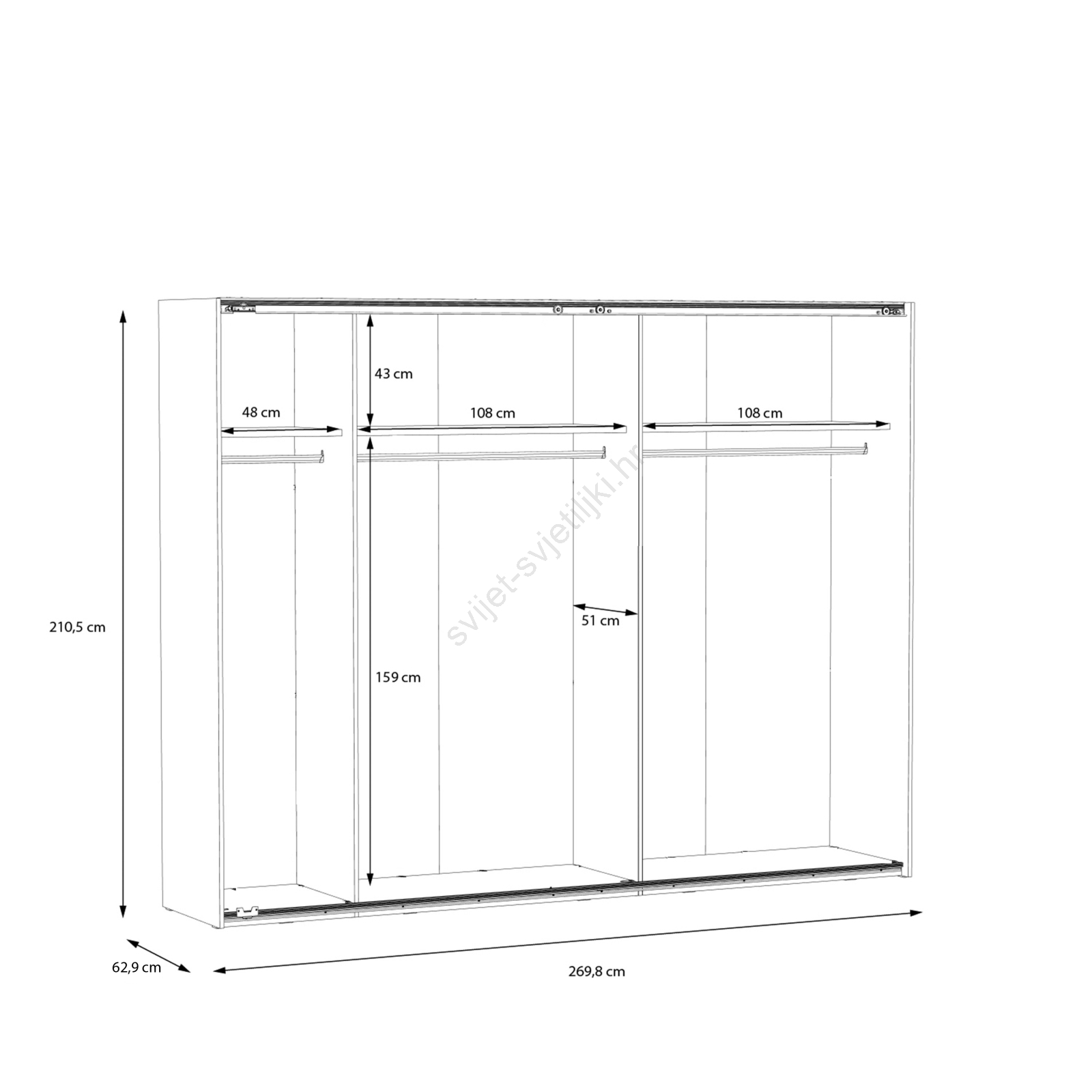 • Ormar je opremljen stangama za vješanje, policama i velikim prostorom za pohranu vaše odjeće, torbi i sezonskih stvari.