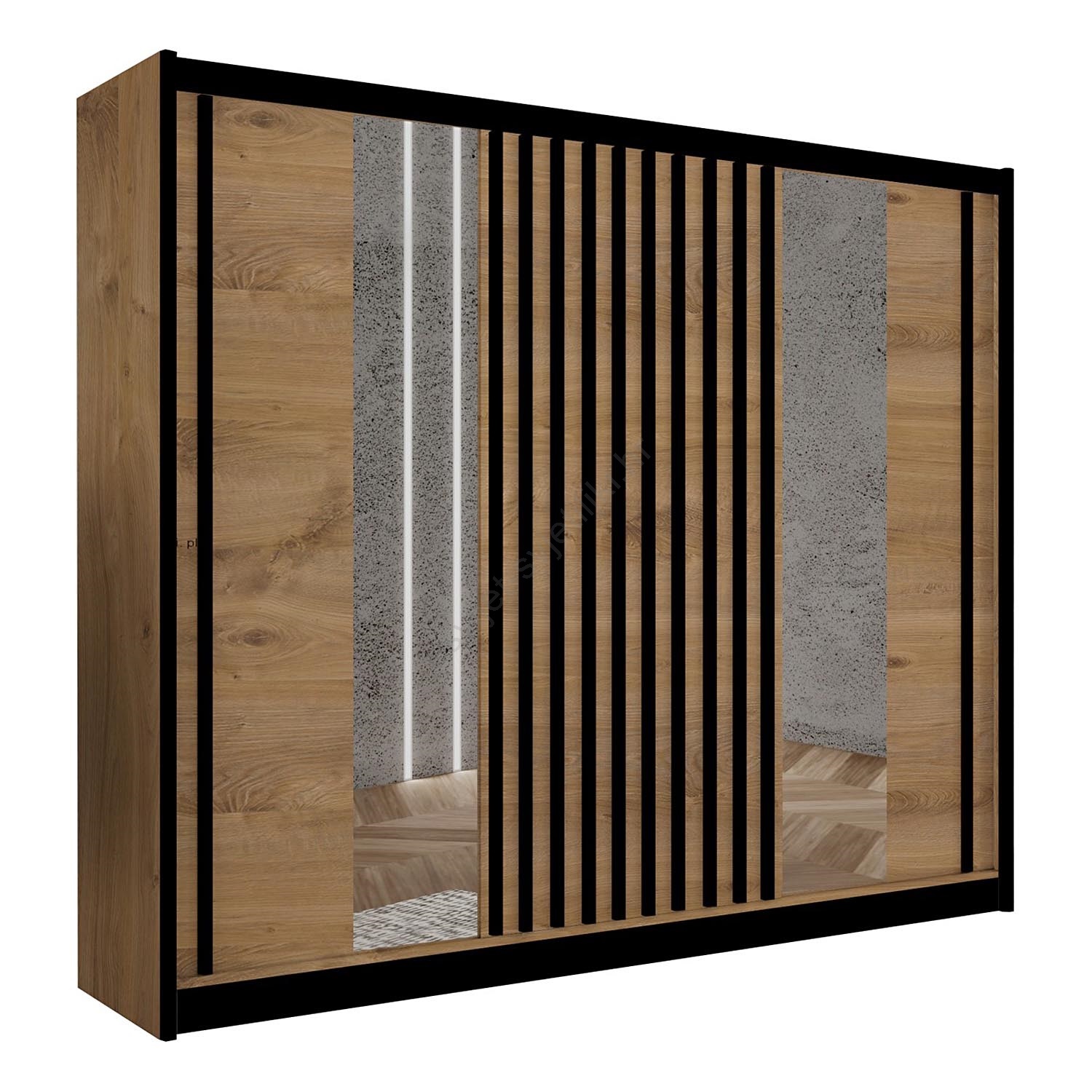 • Ormar s ogledalom SANTINO 250x215 cm hrast craft/crna