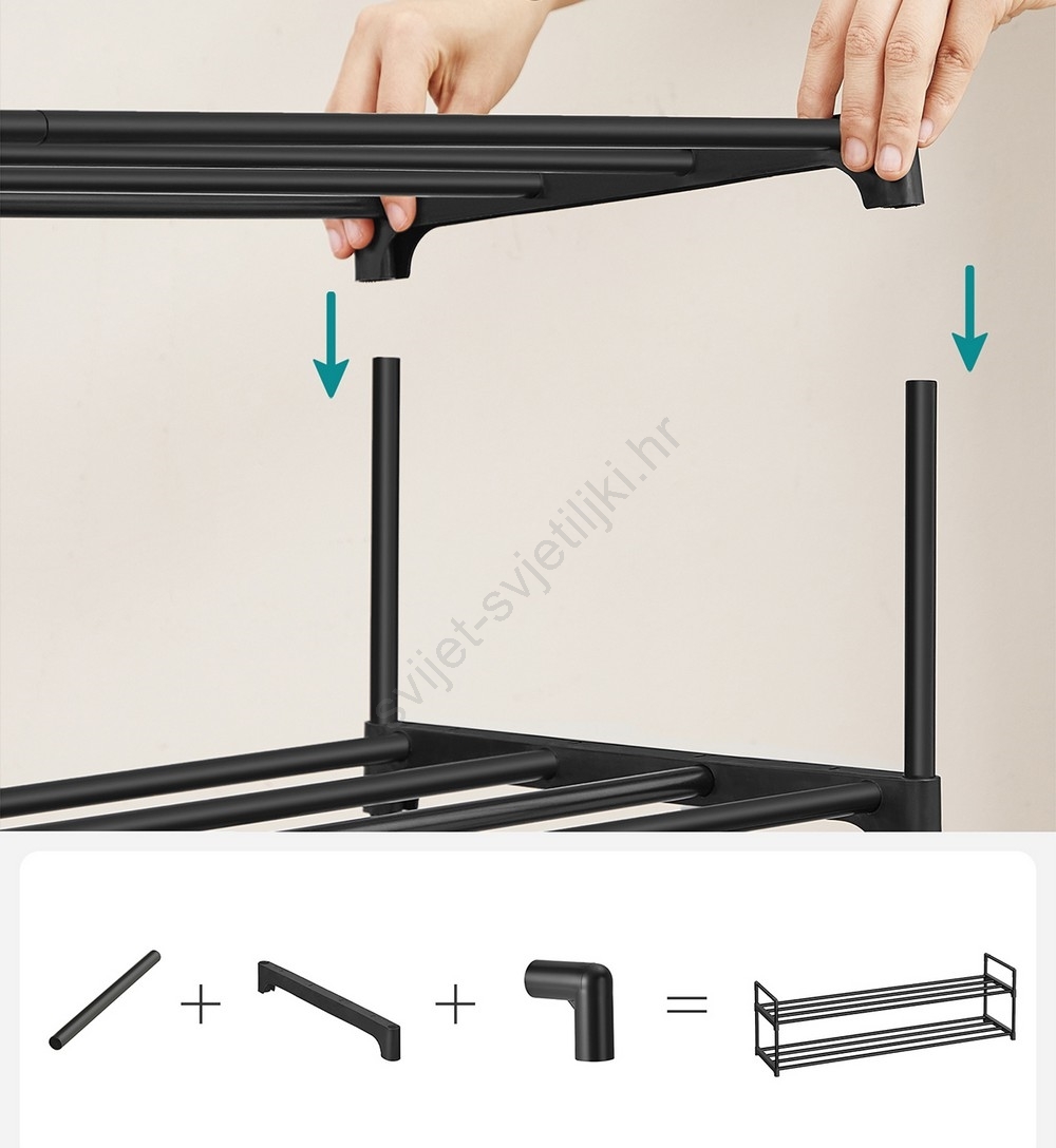 • Zahvaljujući vitkom profilu, ovaj stalak s tri razine zauzima malo prostora na podu, a pritom nudi dovoljno mjesta za pohranu do 15 pari cipela.