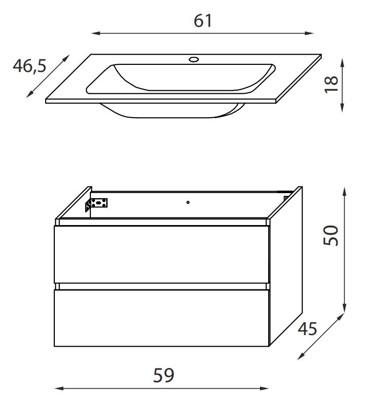 • Kupaonski ormarić s umivaonikom KENWOOD 61 cm, bijeli