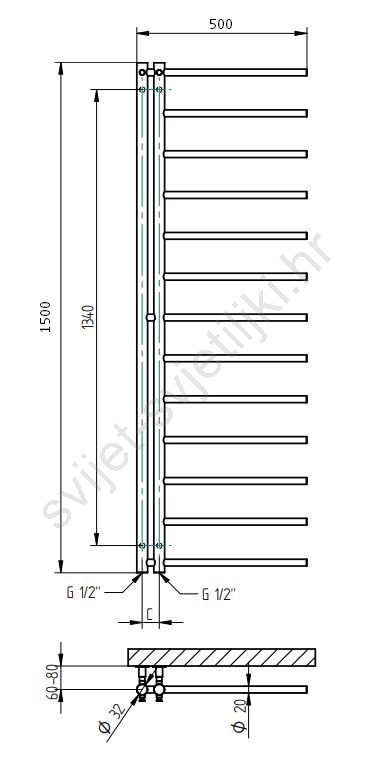 • Osnovna izvedba: radijator za vodeni sustav grijanja.