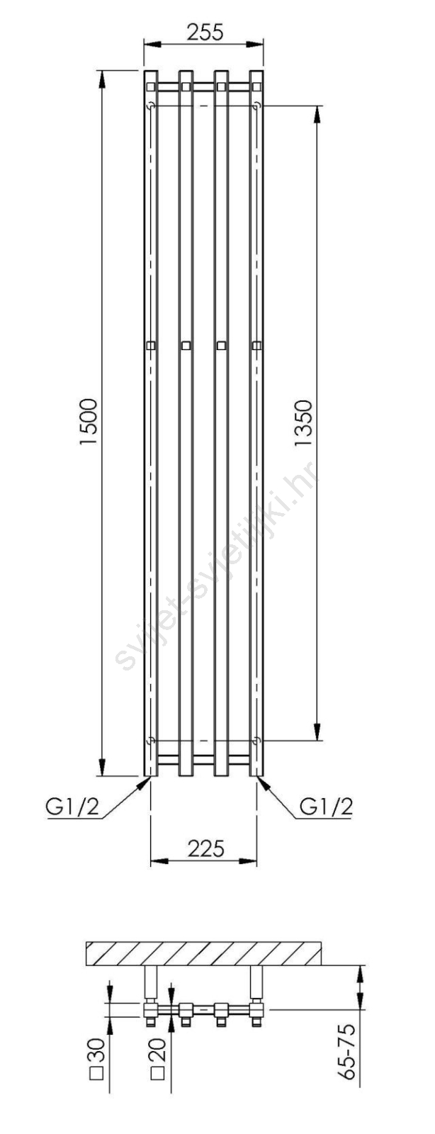 • Radijator je opremljen četvrtastim kukicama u dva reda za jednostavno vješanje ručnika.