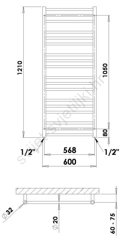 P.M.H. SN4W - Kupaonski ljestvičasti radijator SORANO 470W 121 cm bijela