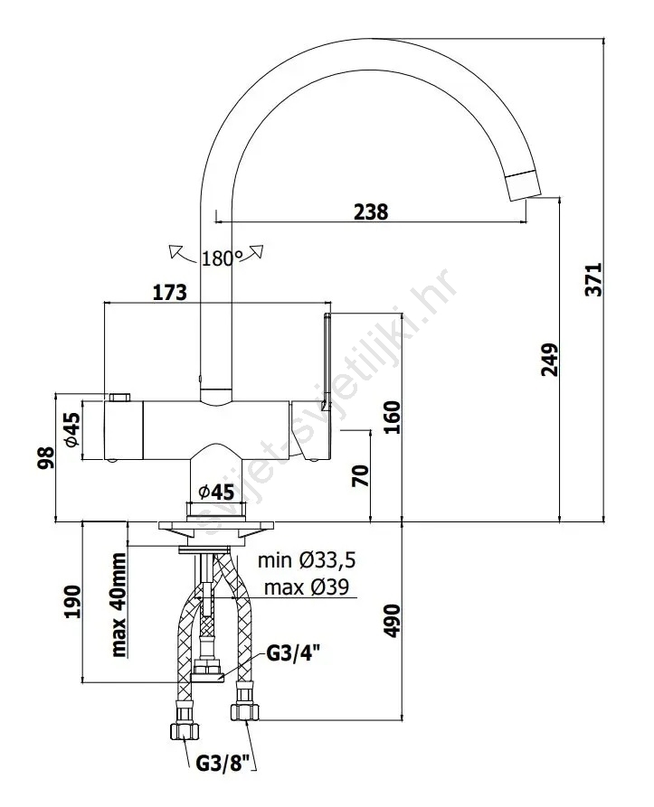 • Rotirajući izljev 180° za jednostavno rukovanje oko sudopera i veći doseg.