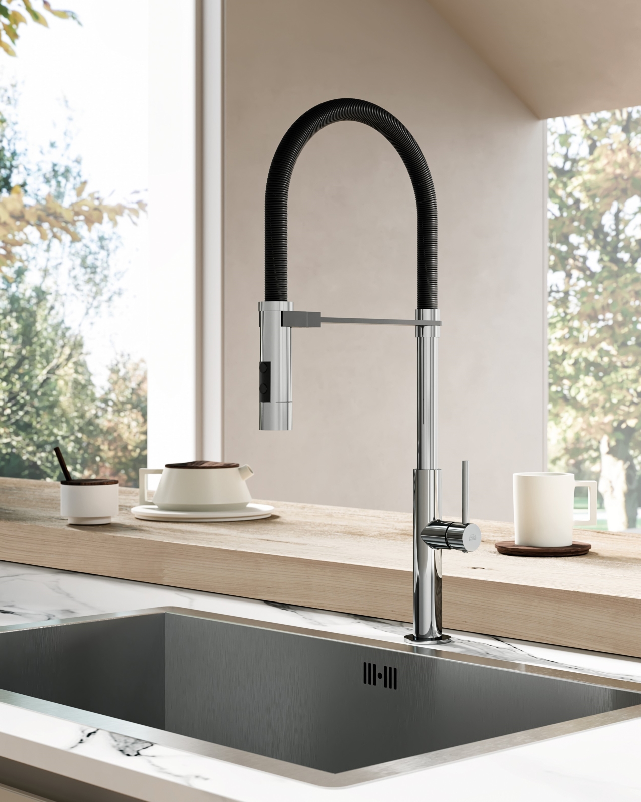 • Kuhinjska slavina za sudoper Paffoni Candy u crno-kromiranoj izvedbi.