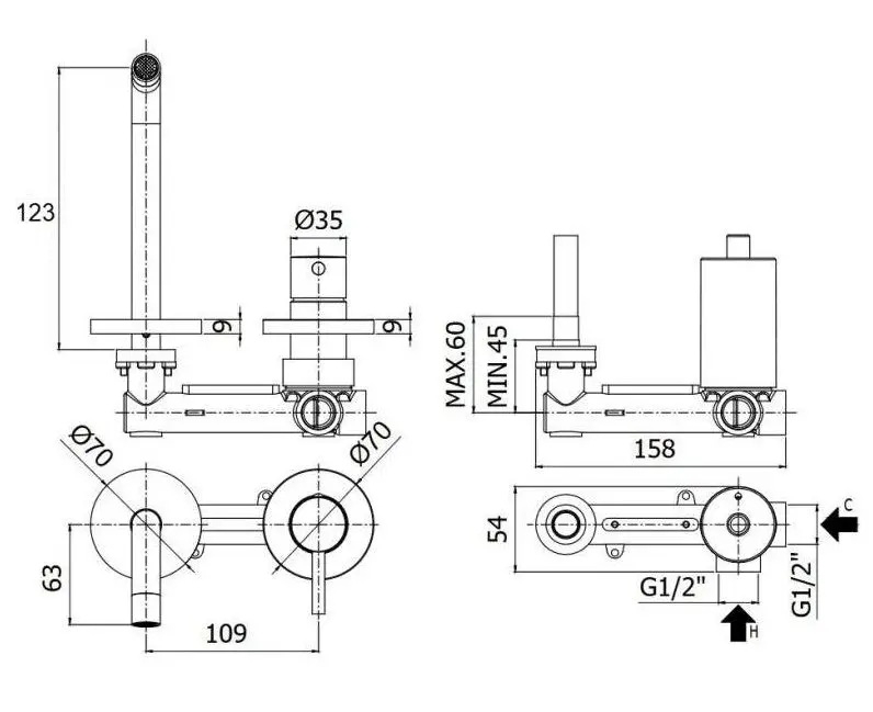 • Čvrsti izljev za precizno usmjeravanje vode.