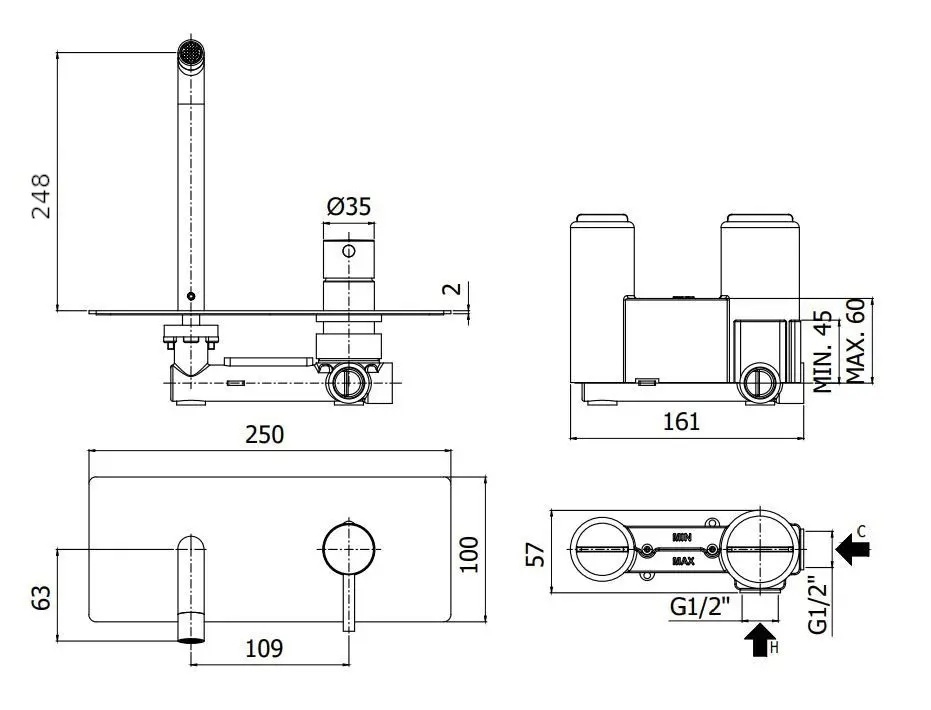 • Elegantna ugradna baterija za umivaonik koja naglašava čist izgled kupaonice i skriva većinu instalacije unutar zida.