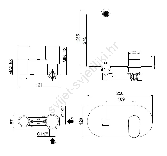• U paketu se nalazi podžbukno montažno tijelo za kompletnu ugradnju.