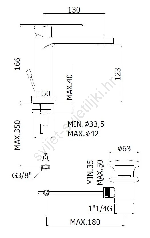 • Stojeća baterija za umivaonik s izljevom.
