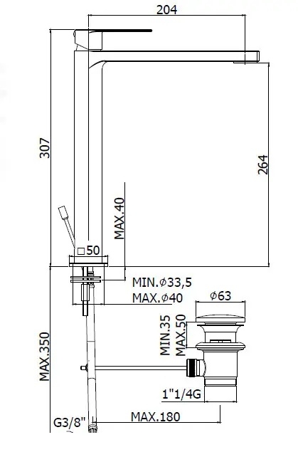 • Visoka umivaonička miješalica u modernom, čistom dizajnu.