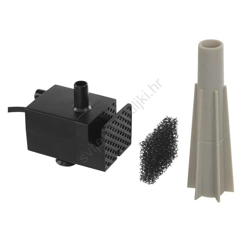 • Sadržaj pakiranja: Fontana, napajajući adapter, priključni kabel, pumpa, filtar za pumpu, pamučni filtar, četkica za čišćenje.