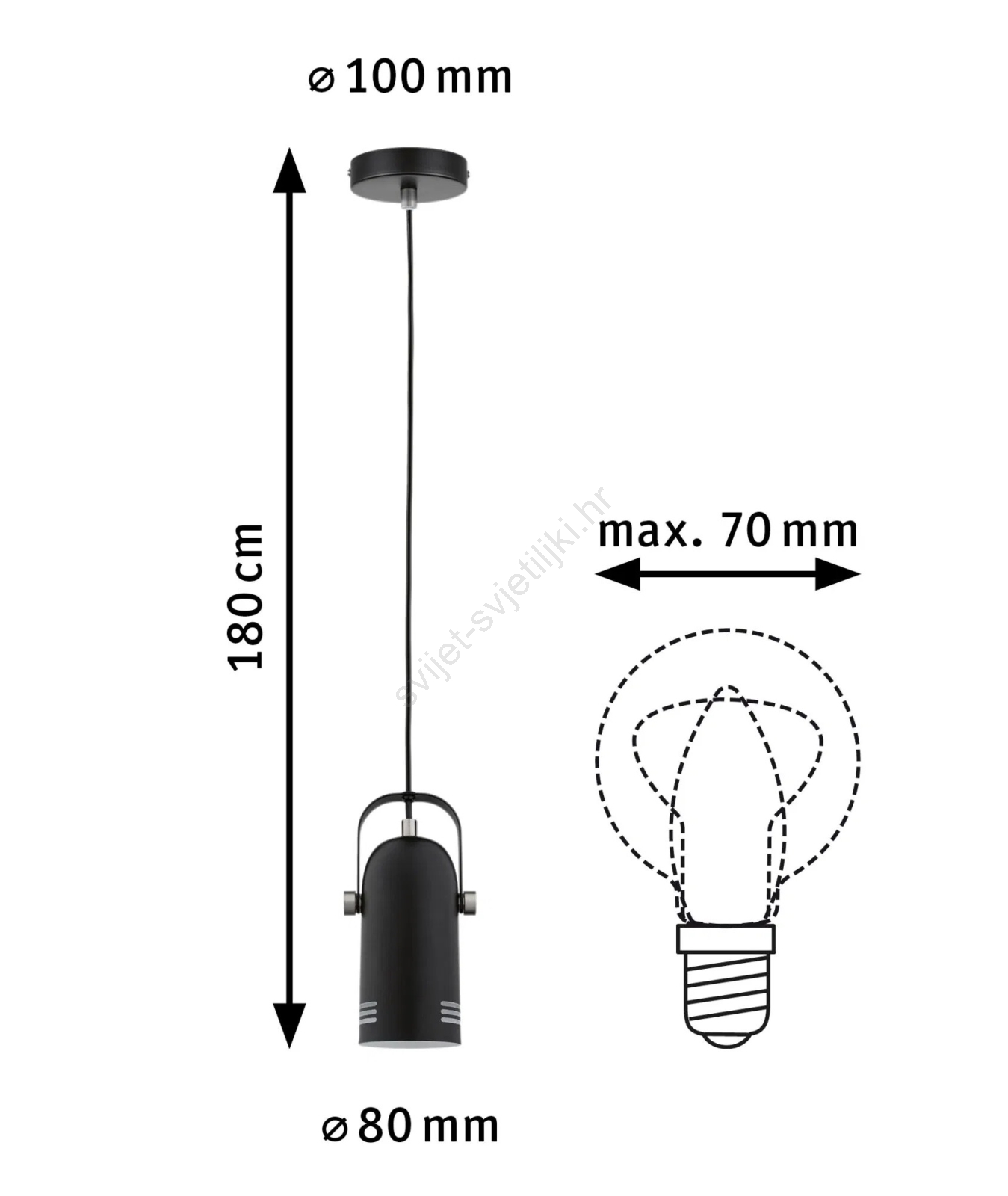 • Paulmann 79766 - LED 1xE27/8W luster na sajli LAVEA 230V crni