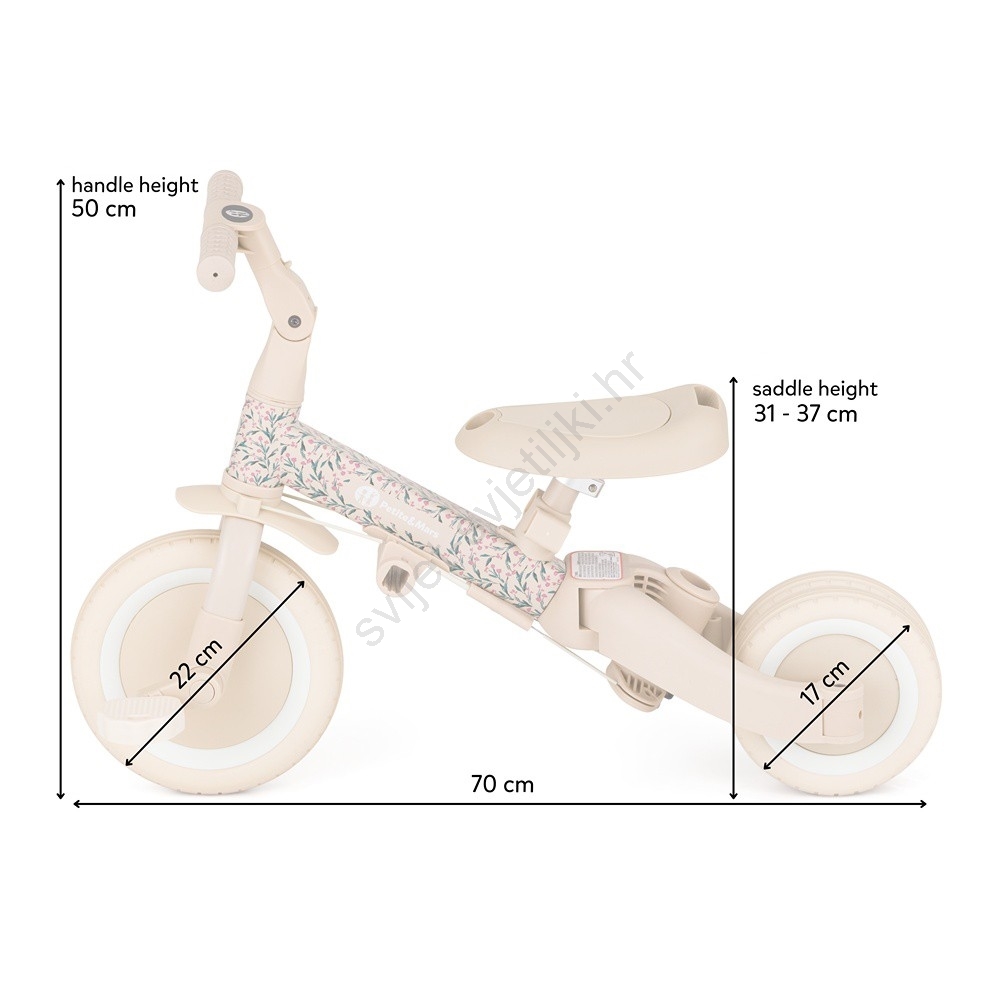• Dimenzije u tricikl verziji: dužina: 67 cm, širina: 46 cm, visina (sjedalo): 31-37 cm.