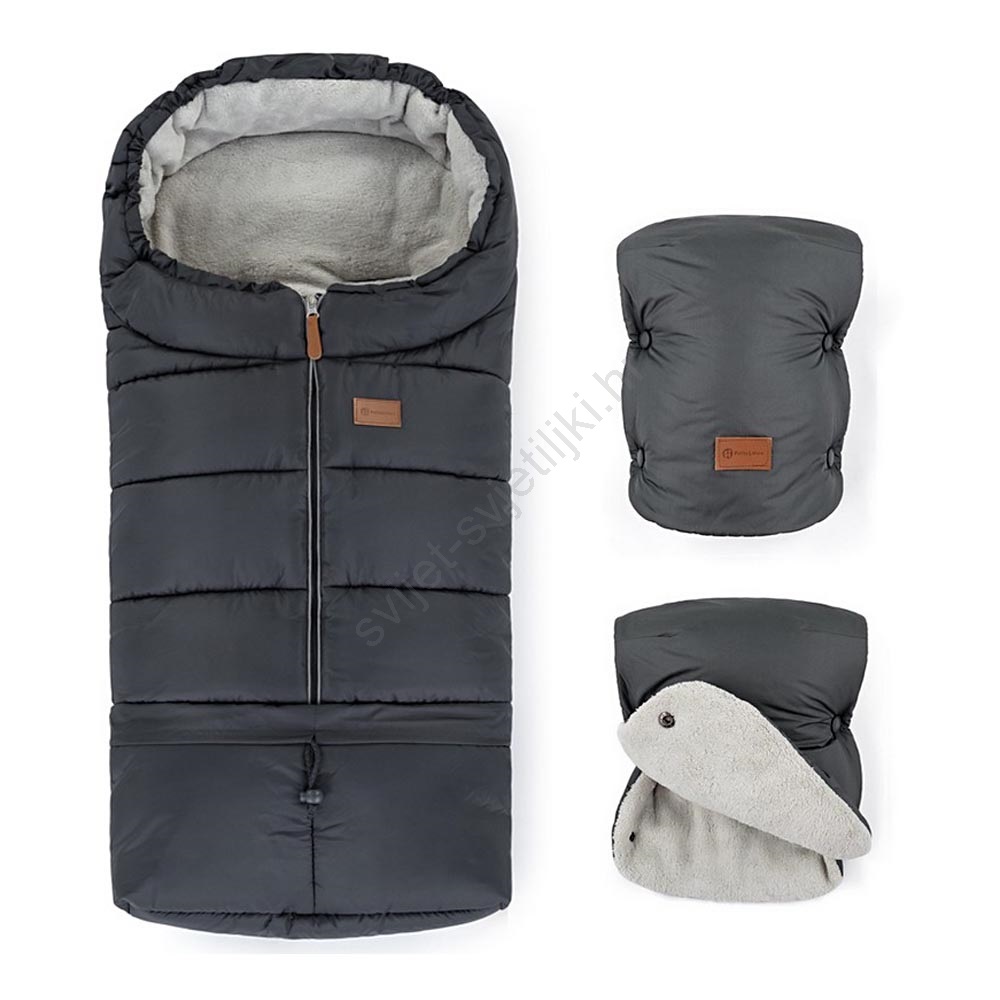PETITE&MARS - SET Zimska vreća za kolica 3u1 JIBOT + rukavice za kolica JASIE siva