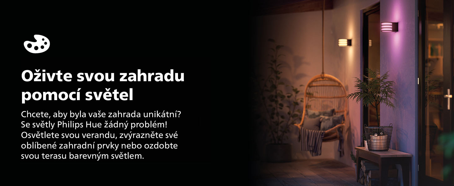 Otkrijte izvanrednost pametnog osvjetljenja Philips Hue. Uživajte u ugodnom prigušenom svjetlu u bezbroj boja ili osvijetlite tamne kutke vrta za osjećaj smirenosti. S Philips Hue vaša će se okućnica probuditi iz tame u vaše omiljene boje koje stvaraju romantičan zalazak sunca, razigran dan ili bilo koje drugo raspoloženje koje poželite. Vrijedi isprobati i izvorne unaprijed postavljene scene iz aplikacije Philips Hue.