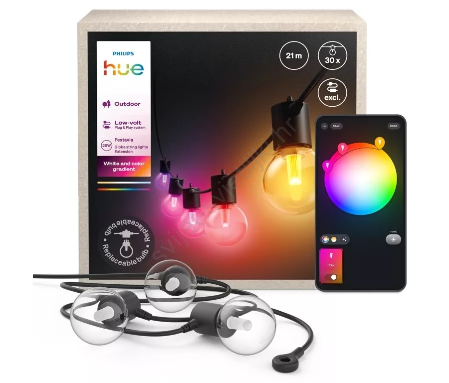 Philips - LED RGBW Hue FESTAVIA vanjski produžni prigušivi LED niz, 30×LED, 21 m, IP65