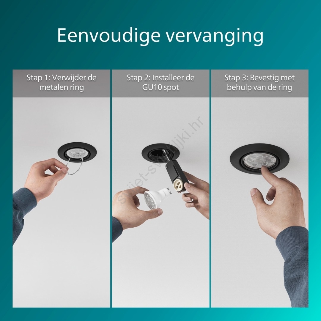 Philips - Ugradno stropno svjetlo PERIDOT 1xGU10/7W/230V crno karakterizira lijep i funkcionalan dizajn. Za svjetiljku je prikladna žarulja s bazom GU10. Ovdje možete kupiti i druge žarulje po povoljnim cijenama. Bit će zanimljiv dodatak Vašem domu.